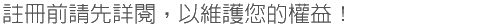 請注意!如拒絕提供加入會員所需必要之資料,將可能導致無法享受完整服務或完全無法使用該項服務。